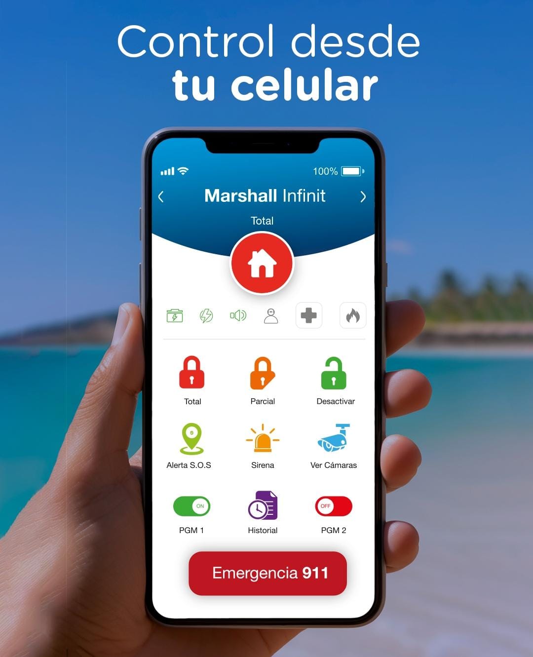 Al tratarse de una alarma autogestionada, cada evento generado en la propiedad se envía en tiempo real a su celular, permitiéndole actuar de forma inmediata ante cualquier situación sospechosa.